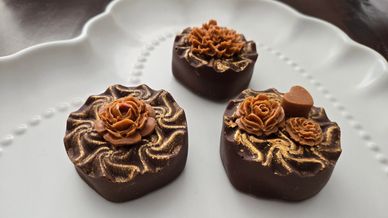 Ingredients (by weight): Chocolate coating (sugar, palm kernel oil, whey powder [milk], nonfat dry milk [milk], cocoa powder (processed with alkali), soy lecithin, artificial flavor), chocolate sandwich cookies (wheat flour, sugar, palm and/or canola oil, cocoa (processed with alkali), high fructose corn syrup, leavening (baking soda and/or calcium phosphate), salt, soy lecithin, artificial flavor). May contain: white chocolate (sugar, palm kernel oil, whey powder [milk], nonfat dry milk [milk], soy lecithin, artificial flavor), sprinkles (sugar, corn starch, vegetable oil, artificial colors, soy lecithin), sanding sugar (sugar, artificial colors), edible gold leaf (gold), luster dust (mica-based colorants, titanium dioxide, iron oxides), oil-based chocolate food coloring (vegetable oil, artificial colors). Contains: Milk, Wheat, Soy Manufactured in a home kitchen that also processes other allergens.